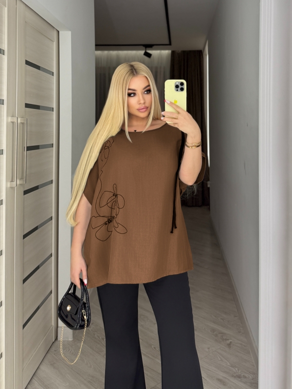 Стильна жіноча блуза oversize з натуральної тканини. Вільний і подовжений крій гарантує комфорт і приховує всі недоліки.