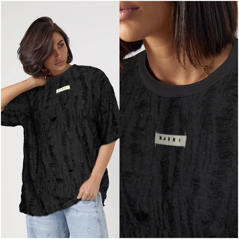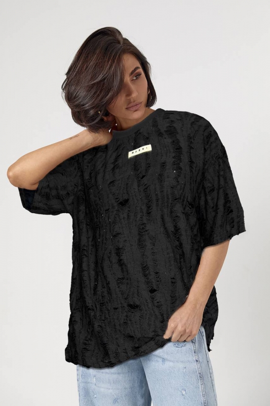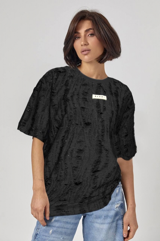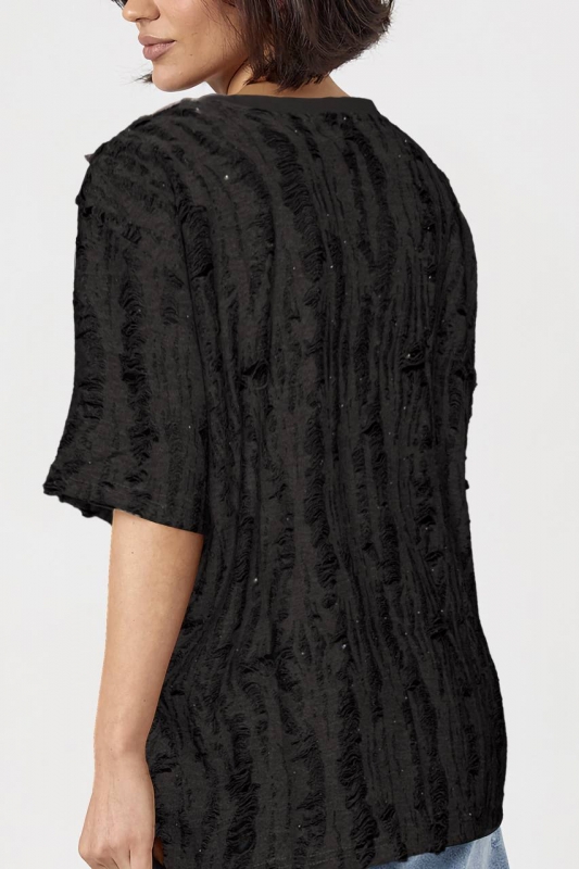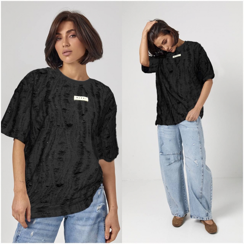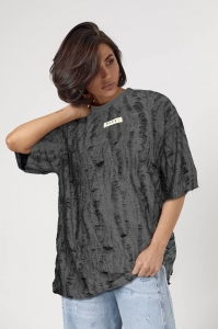Стильна oversize футболка з унікальним фактурним дизайном і дрібними камінцями,
