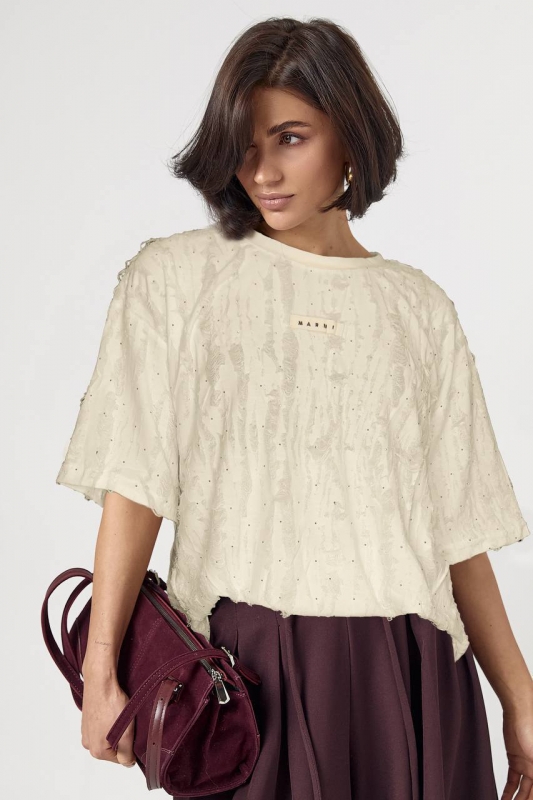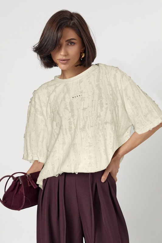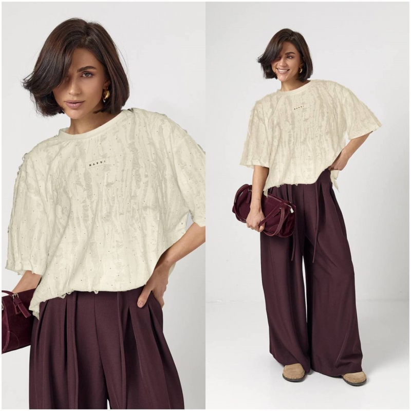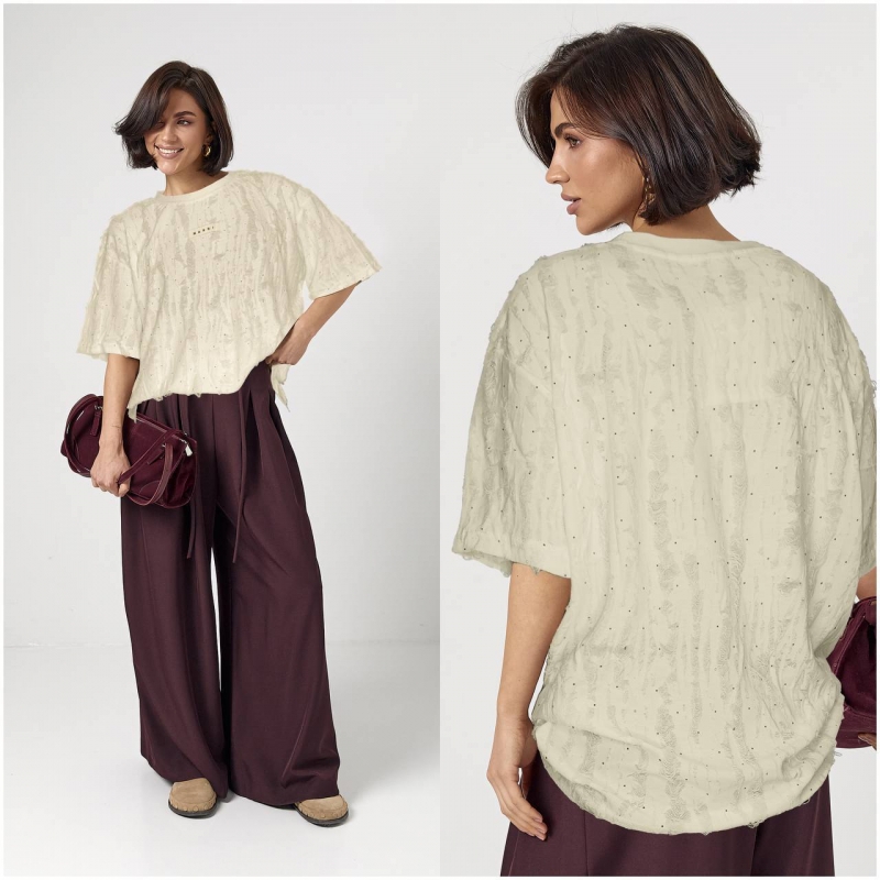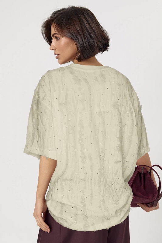 Стильна oversize футболка з унікальним фактурним дизайном і дрібними камінцями,