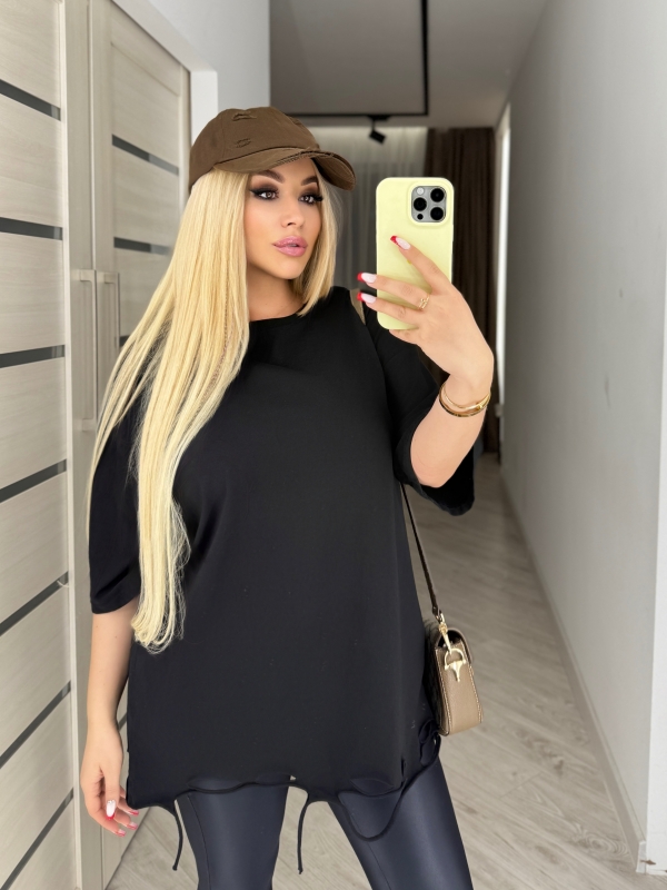 Жіноча футболка oversize у стильних кольорах з трендовим необробленим краєм.