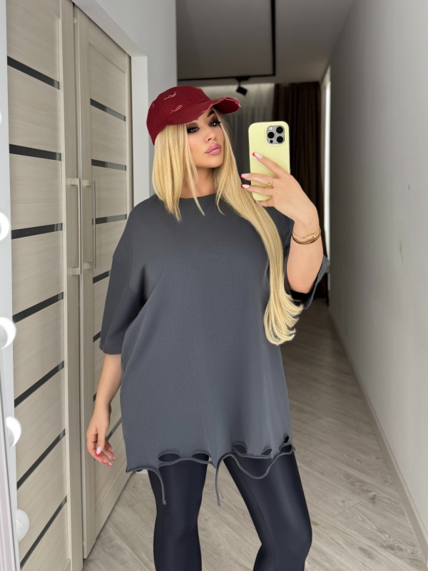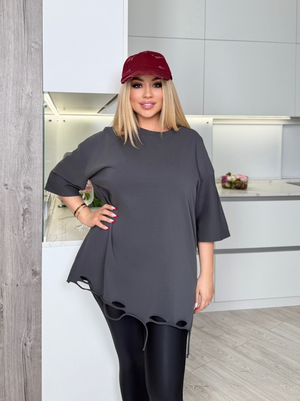 Жіноча футболка oversize у стильних кольорах з трендовим необробленим краєм.