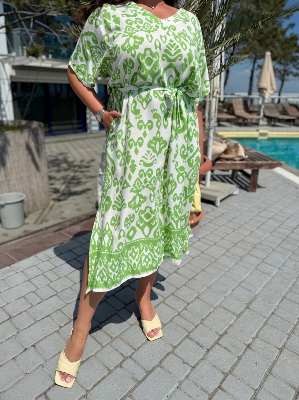 Літнє плаття у вільному стилі з яскравим орнаментом стане ідеальним варіантом для відпочинку або прогулянок у спекотну погоду.