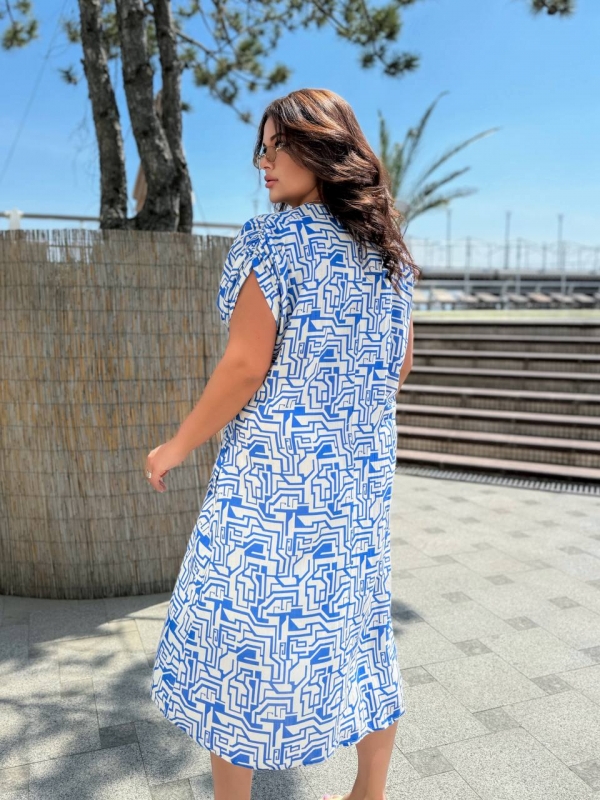 Літнє плаття прямого крою з яскравим геометричним принтом — стильне та зручне рішення для спекотних днів.