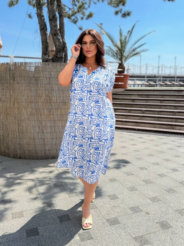 Літнє плаття прямого крою з яскравим геометричним принтом — стильне та зручне рішення для спекотних днів.