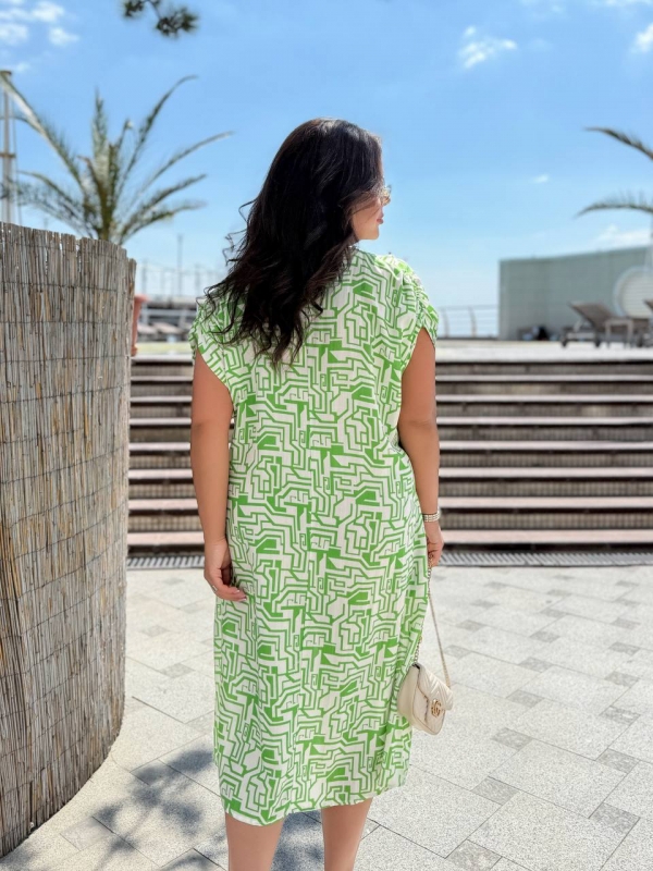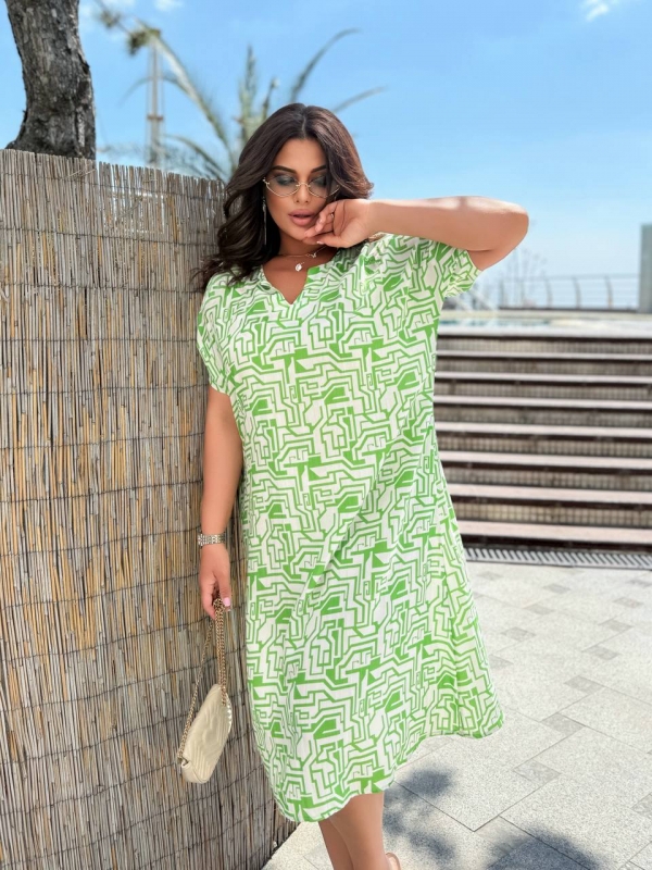 Літнє плаття прямого крою з яскравим геометричним принтом — стильне та зручне рішення для спекотних днів.